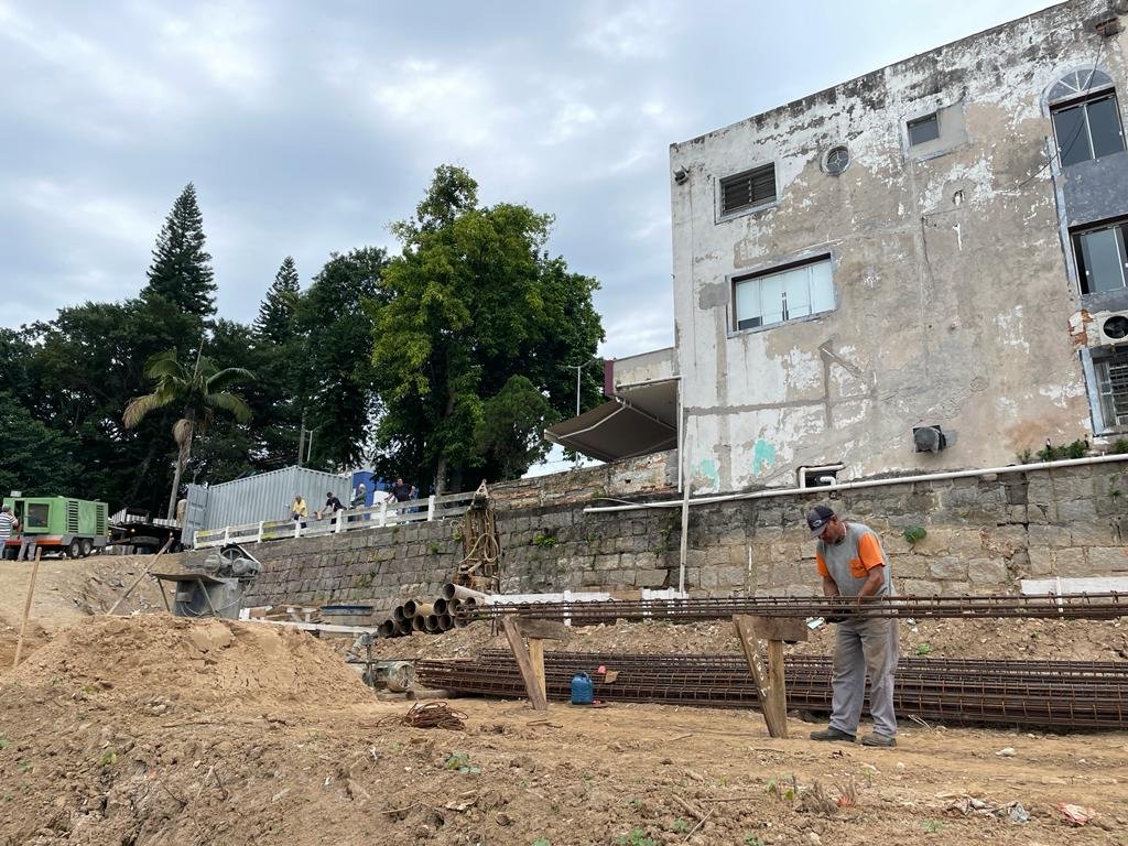 Nesta terça-feira (26) as equipes da prefeitura realizaram a fiscalização do canteiro de obras onde a máquina executará o trabalho de colocação das 40 estacas raiz, divididas em oito furos por bloco. Na sequência será colocada a estrutura de concreto, com a instalação da madeira, por fim.