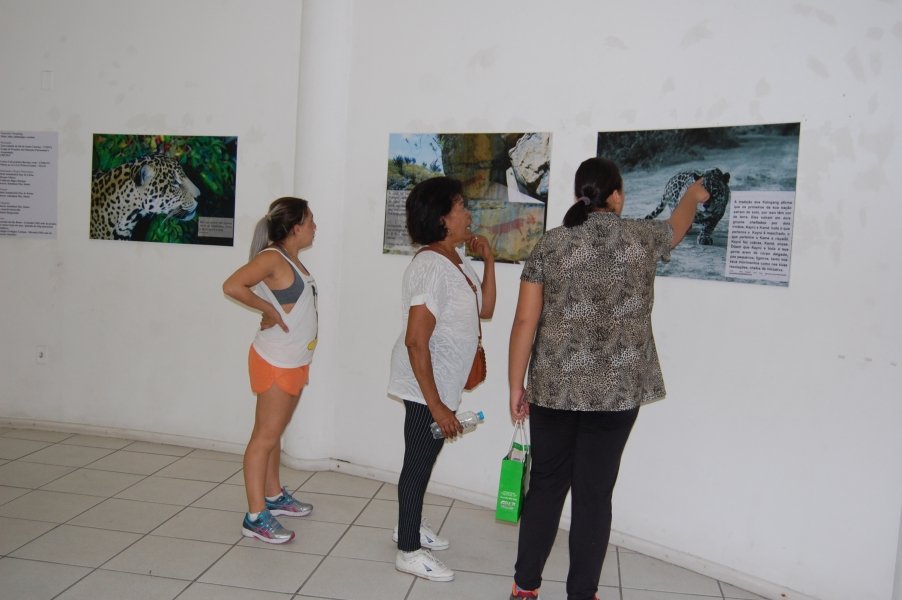 A mostra retrata a visão sobre as onças dos diversos povos que ocuparam o Brasil, desde os tempos pré-históricos e traz fotos de onças e de sítios arqueológicos, com pinturas rupestres, indicando que as onças eram reverenciadas em diversas culturas indígenas. Os textos que acompanham a exposição, apresentam ainda os mitos, significados e sentidos dos Guarani, Kaingang e Xokleng, os colonizadores e os mateiros.