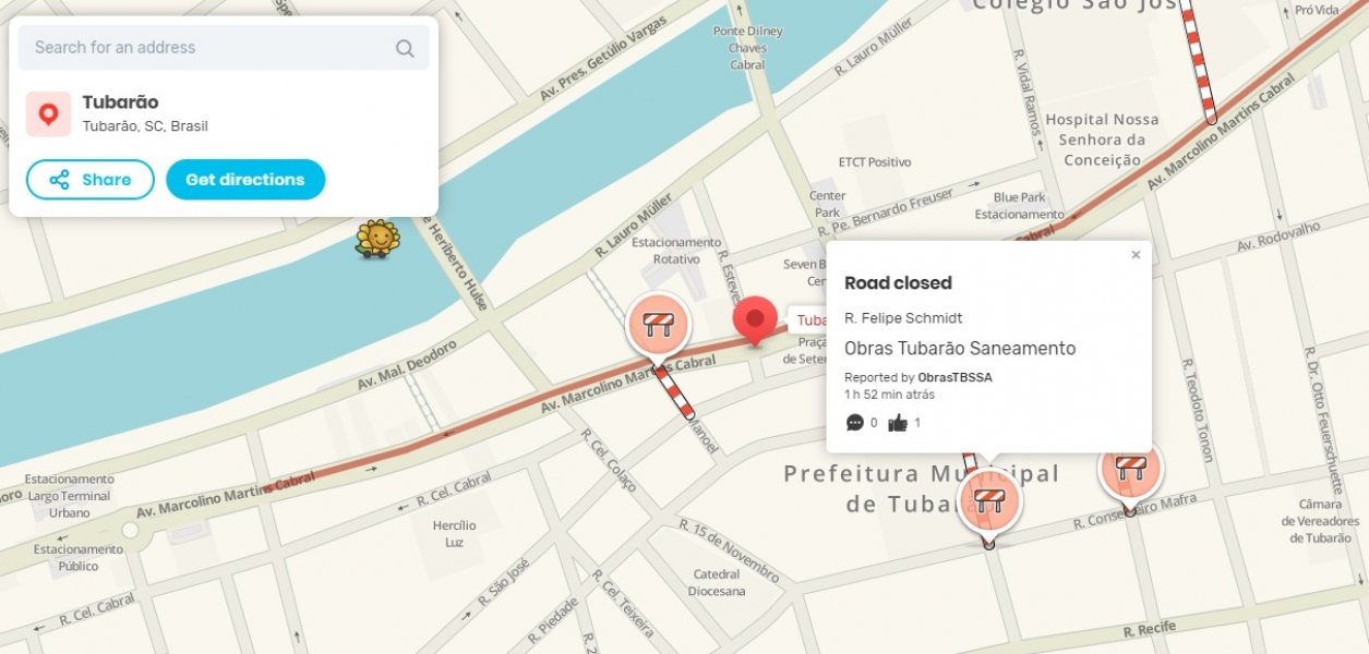 Com os trabalhos de implantação do Sistema de Coleta e Tratamento de Esgoto, a Concessionária está em diversas frentes de serviço. Nesta etapa, segue com atuação em grande escala na região Central de Tubarão. Para minimizar o impacto aos cidadãos, a Tubarão Saneamento que já investiu em um sistema próprio para informar sobre os desvios no trânsito, estágio de execução das redes, entre outros, agora integra a plataforma ao aplicativo Waze, possibilitando aos usuários acesso à informação em uma ferramenta planejada para veículos, popularizada e gratuita.