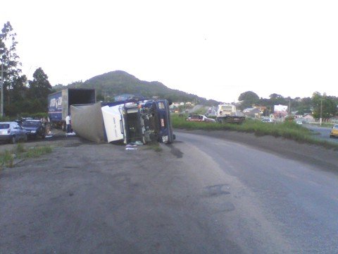 Sexta-feira, uma colisão frontal entre uma motocicleta e um Astra deixou um dos condutores bastante ferido, em Laguna, às 17h45min. Vinte cinco minutos depois, um outro acidente na rodovia, em Capivari de Baixo. Um caminhão com placas do Rio Grande do Sul tombou, provavelmente por causa do vento, em frente ao trevo de acesso à cidade. A carga atingiu um Audi. Ninguém saiu ferido.