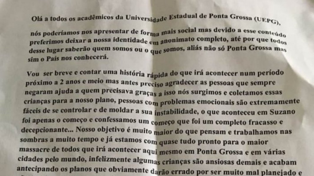 O bilhete foi encontrado em um dos banheiros do campus Uvaranas. Para investigar o caso, a UEPG solicitou o reforço da vigilância interna e acionou os órgãos de segurança externos.
