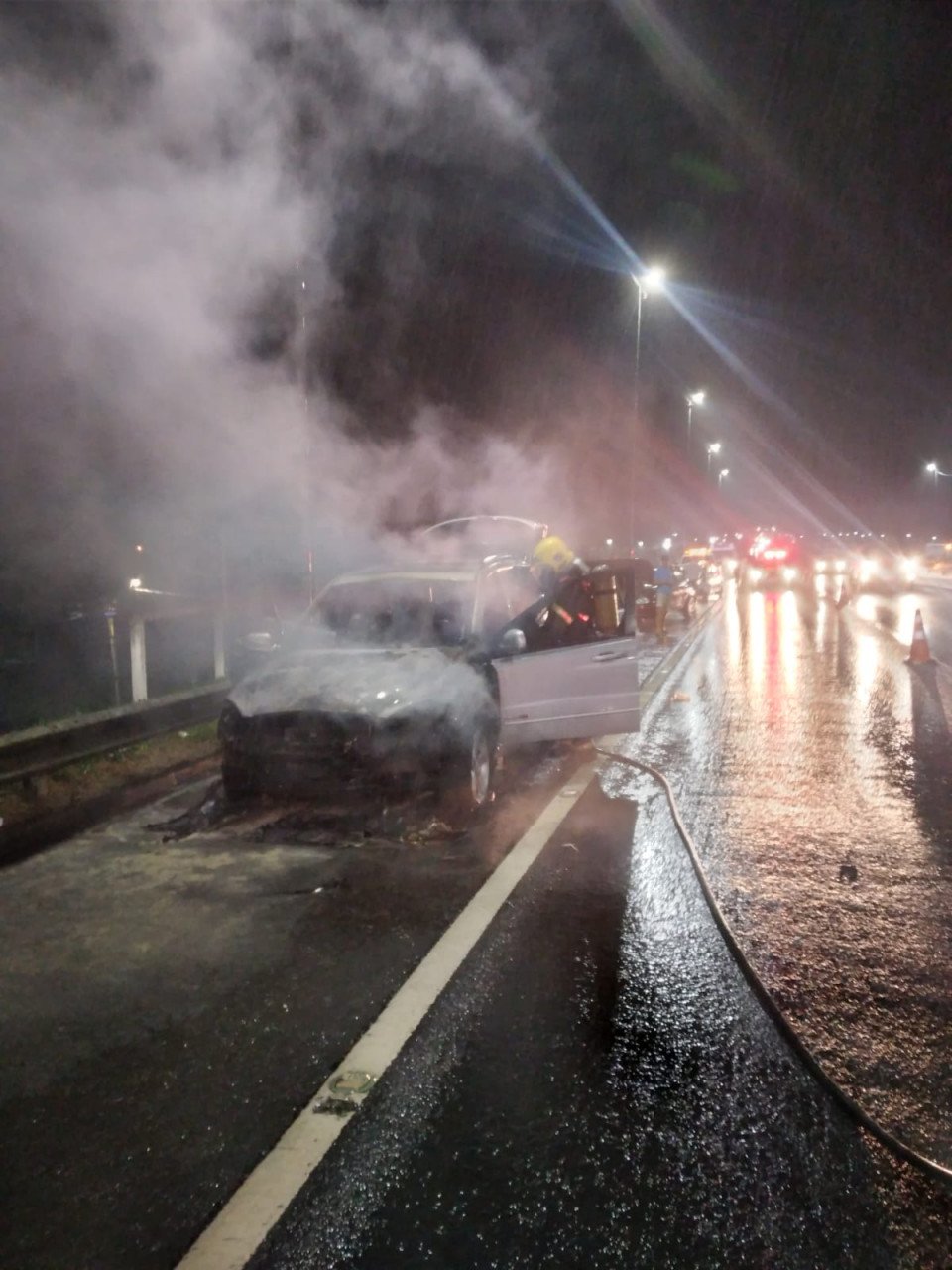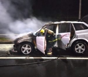 Viatura Auto Bomba Tanque e Resgate esteve no local para conter o incêndio em veículo de passeio na via pública, na BR-101. Os bombeiros confirmaram a natureza da ocorrência e a extinção do incêndio.