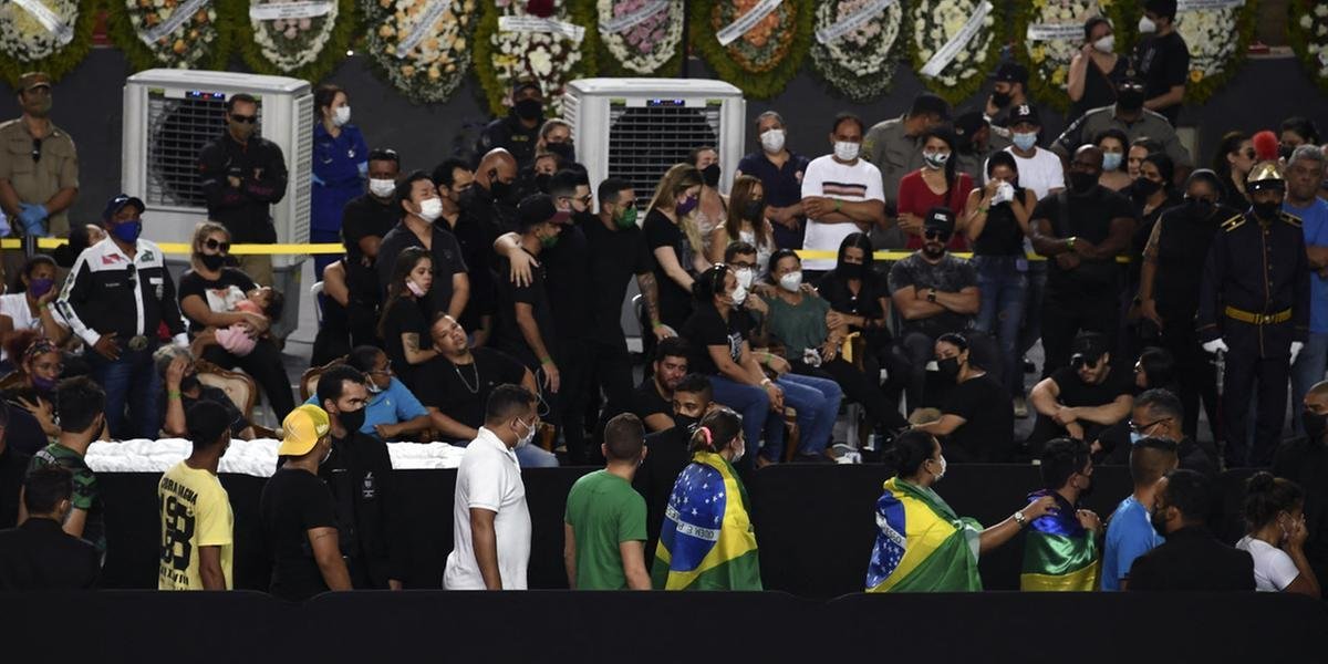 O velório da cantora Marília Mendonça e do tio e assessor Abicieli Silveira Dias Filho chegou ao fim após despedidas de fãs, amigos e familiares no Ginásio Goiânia Arena. Os corpos agora seguem em cortejo em caminhões do Corpo de Bombeiros até o Cemitério Parque Memorial. A cerimônia será restrita aos familiares.
