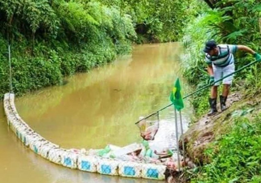 “Pesquisei muito sobre como ajudar o rio, mas tudo estava fora do meu orçamento. Foi aí que tive a ideia de criar uma barreira ecológica feita com matérias recicláveis, com galões de 50 litros e redes para unir os galões e cordas, gastando em média mil reais para finalizar o projeto”, revela.