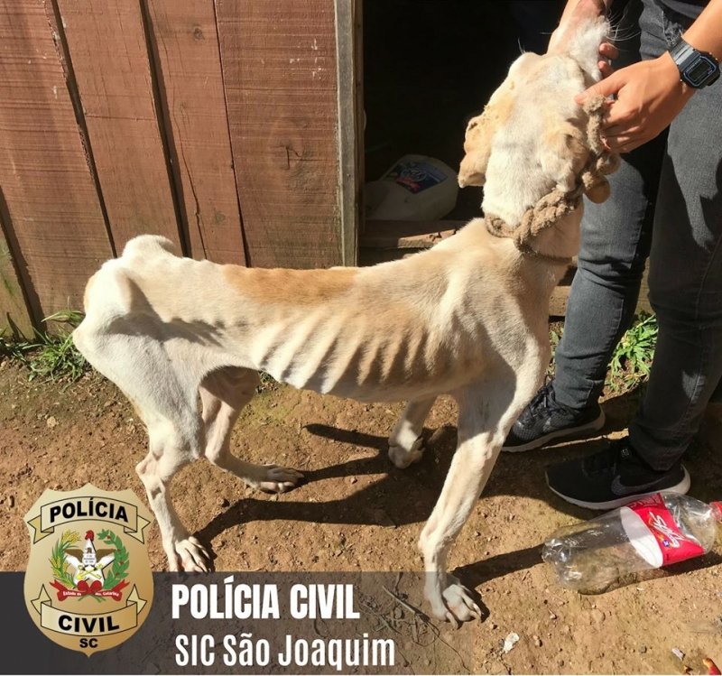 Após denúncias de maus-tratos a animais, a Polícia Civil de São Joaquim resgatou dois cachorros que estavam passando fome e sem higiene. A polícia contou com da ONG ACAPRA.