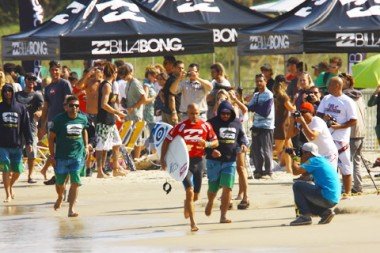 Kelly Slater avançou e continua a defender o título conquistado na final contra o brasileiro Mineirinho, no Guarujá, em 2009.