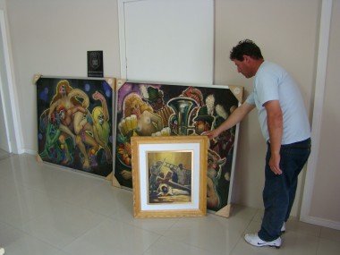 Duas telas foram recuperadas na manhã de ontem. Estavam em um bar, no bairro Oficinas, próximo ao clube 1º de Maio. Os policiais as encontraram no banheiro. O proprietário do estabelecimento foi conduzido à Central de Polícia Civil, onde prestou depoimento e foi liberado. O comerciante informou que as obras foram ‘empenhadas’ por algumas cervejas, no valor de aproximadamente R$ 30,00. As telas são intituladas “Dança do Novo Mundo” e “Chopp Espumoso”, ambas de 1988.